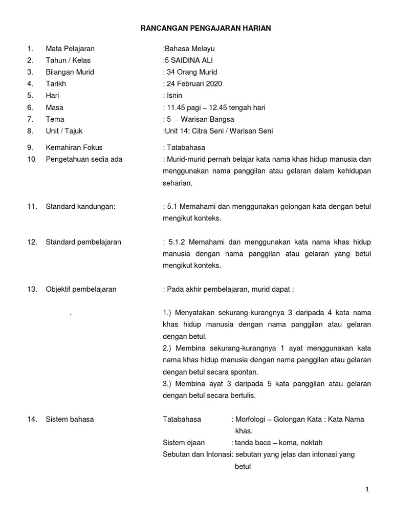 Menerima teguran dengan hati yang terbuka dalam perbualan. RPH Bahasa Melayu Tahun 5 adalah Rancangan Pengajaran Harian yang perlu disediakan lebih awal oleh guru sebelum menjalankan sesi pegajaran dan pembelajaranRancangan Pengajaran Harian ini dibina sebagai panduan para guru untuk mengajar dengan lebih sistematik dan efektif serta mampu untuk mencapai apa yang. KENALANKU UNIT 1 Tajuk.